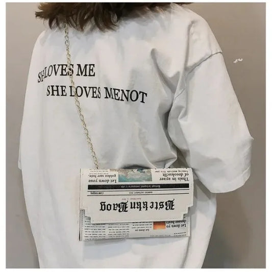 Sac bandoulière femme PU avec chaîne – Presséa™ Style urbain motif journal | Élégant
